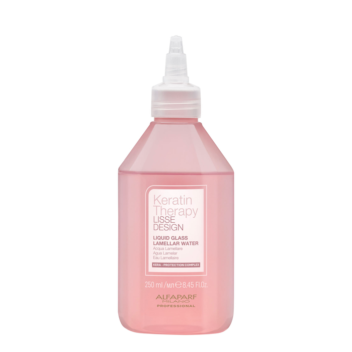 The Alfaparf Milano Professional Keratin Therapy Lisse Design Liquid Glass Lamellar Water 250ml is a revolutionary hair treatment that transforms your hair into a smooth, shiny masterpiece.