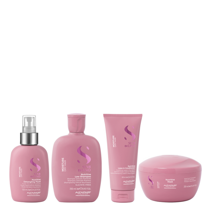 The Alfaparf Milano Semi Di Lino Moisture Complete Quad Bundle is a comprehensive hair care set designed to nourish and hydrate your hair.