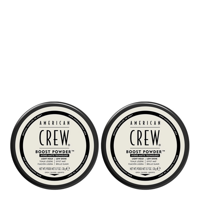 American Crew Boost Powder Duo Bundle is a pack of two 10g American Crew Boost Powders that provide anti-gravity volume with a matte finish, adding grit for dramatic, gravity-defying texture.