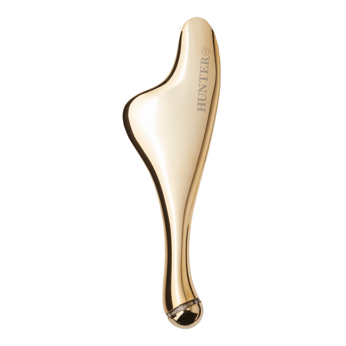 Hunter Lab Aura Facial Sculpting Tool is a high-performance 24k gold plated uplifting device solar-charged with gentle microcurrent to energise face muscles and enhance cellular energy for smooth skin and a toned and youthful appearance.
