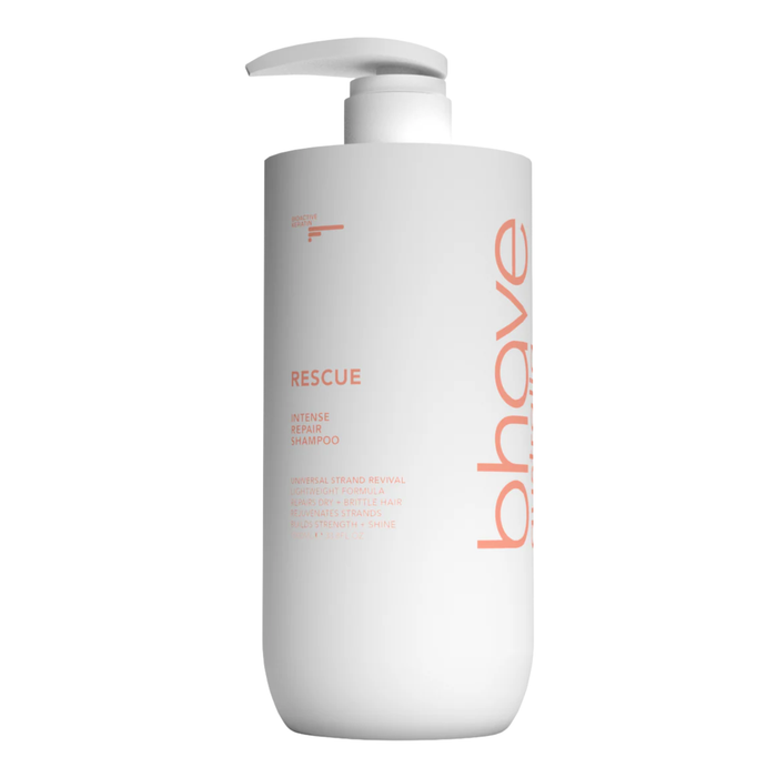 Bhave Rescue Shampoo 1000ml is a weightlessly moisturizing shampoo that rebuilds and repairs dry, brittle, damaged hair caused by chemical treatments, heat appliances, and environmental aggressors.