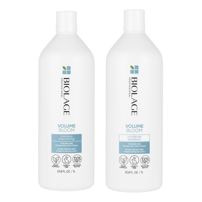 Biolage Volumeboom 1 Litre Shampoo and Conditioner Bundle is a haircare bundle that includes Biolage Volumebloom Shampoo and Biolage Volumebloom Conditioner, both of which are designed to plump fine hair with long-lasting, volumizing bounce.