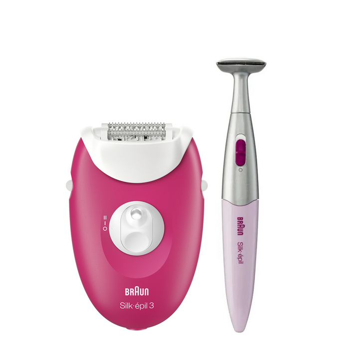 The Braun Silk-épil 3 Corded Epilator with Bikini Trimmer SE3-202 is a versatile hair removal solution for smooth skin.