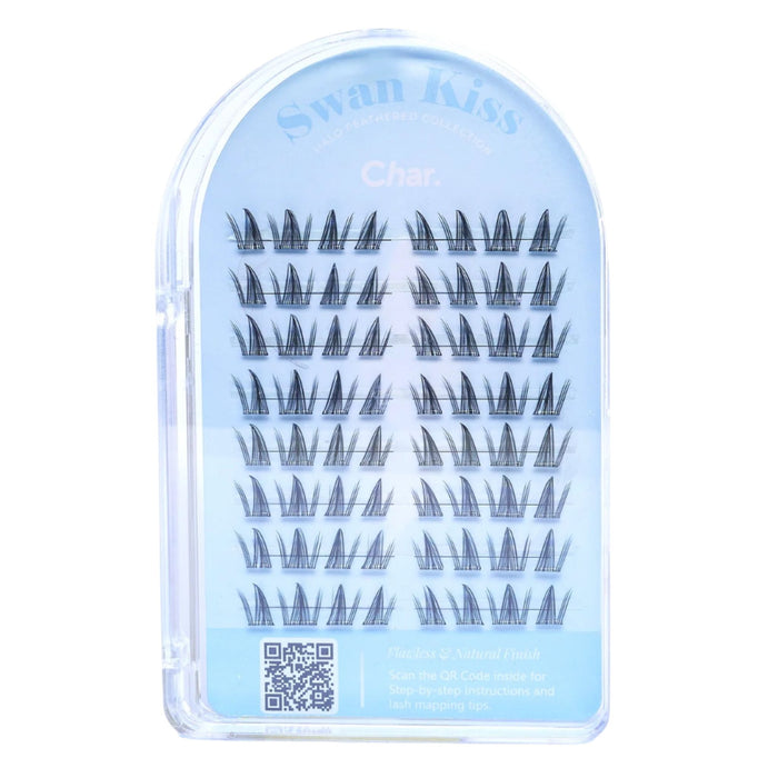The Char Cosmetics Swan Kiss Cluster Lash 64pcs offers a seamless and natural look with pre-glued lashes that are easy to apply underneath the base of your natural lashes.