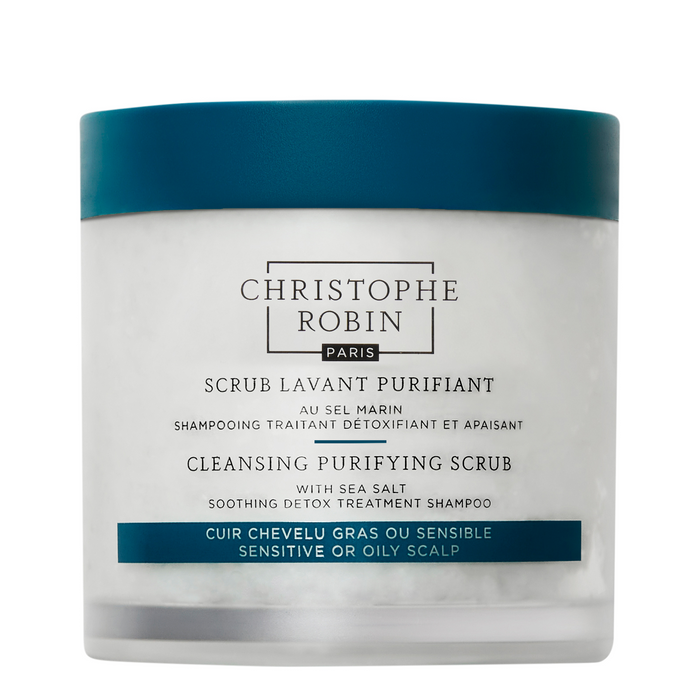 Christophe Robin Cleansing Purifying Scrub With Sea Salt 250ml is a deep cleansing shampoo scrub that invigorates hair and sensitive or oily scalps, leaving them feeling immediately rebalanced and purified.