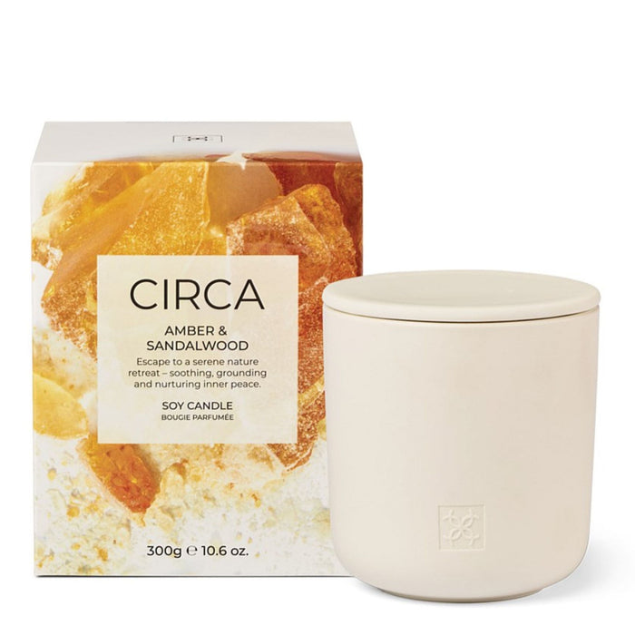 The CIRCA Candle 300g - Amber & Sandalwood is a luxurious scented candle that transforms any space with its warm and inviting aroma.