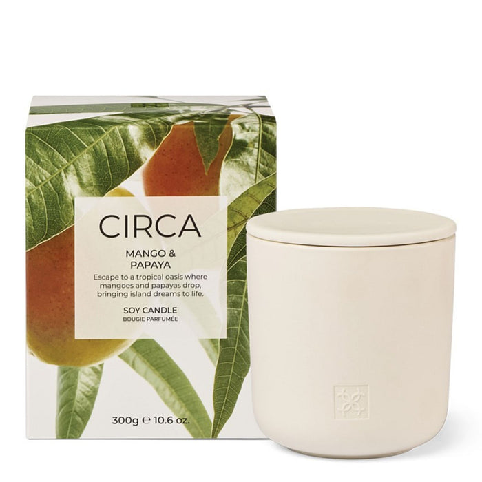 The CIRCA Candle 300g - Mango & Papaya is a luxurious scented candle that brings a tropical paradise to your home.