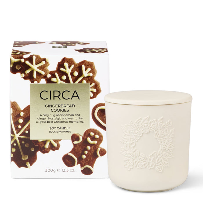 Experience the warm and inviting aroma of the CIRCA Gingerbread Cookies Christmas Candle 300g.
