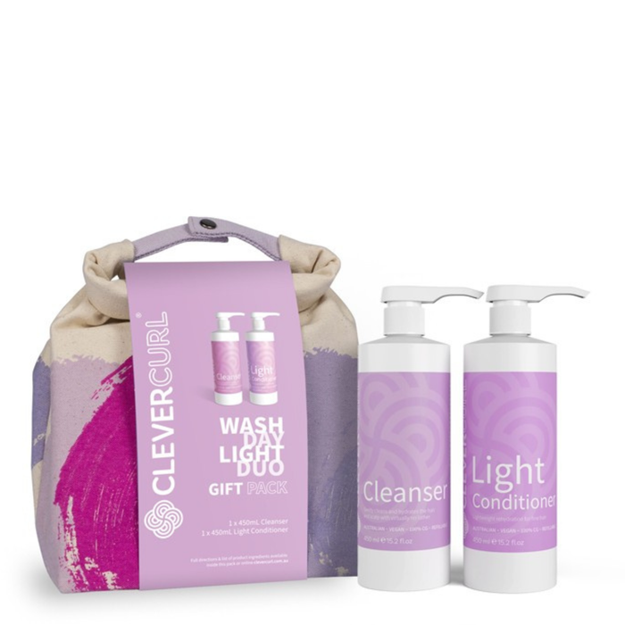 The Clever Curl Cleanser & Light Conditioner Duo Pack is the perfect combination for those wanting to achieve hydrated, healthy-looking curls.