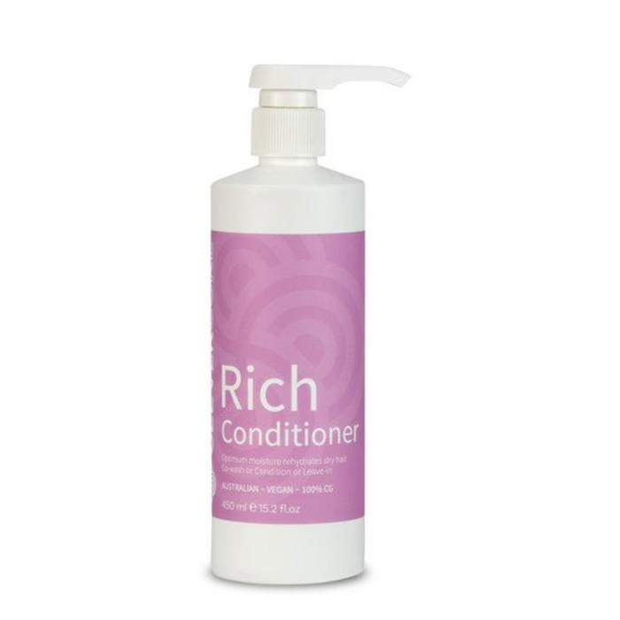 Clever Curl Rich Conditioner 450ml is a rich conditioner designed to rehydrate coarse, thirsty hair, and can be used as a traditional conditioner or as a leave-in treatment.