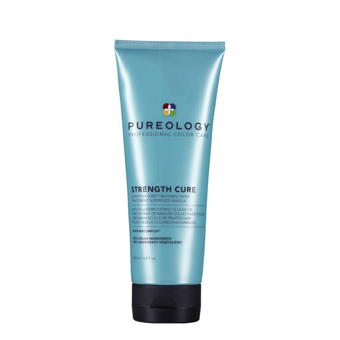 Pureology Strength Cure Superfood Treatment 200ml is a hair strengthening mask that protects and repairs damaged, colour-treated hair from future hair breakage.