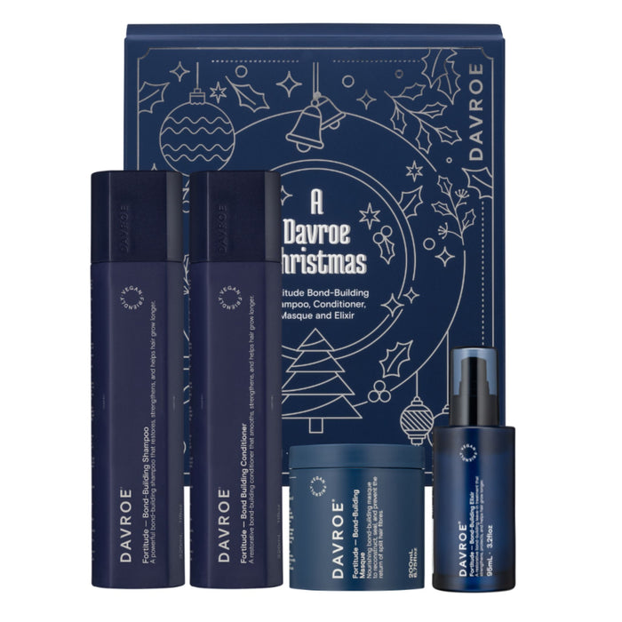 This exclusive holiday pack from Davroe is designed to fortify and rejuvenate your hair with its bond-building formula. Perfect for those looking to repair and strengthen their hair, this quad pack includes everything you need for a complete hair care routine. With natural ingredients and a focus on hair health, the Davroe Fortitude Senses Holiday Quad Pack is a must-have for anyone seeking stronger, healthier hair.