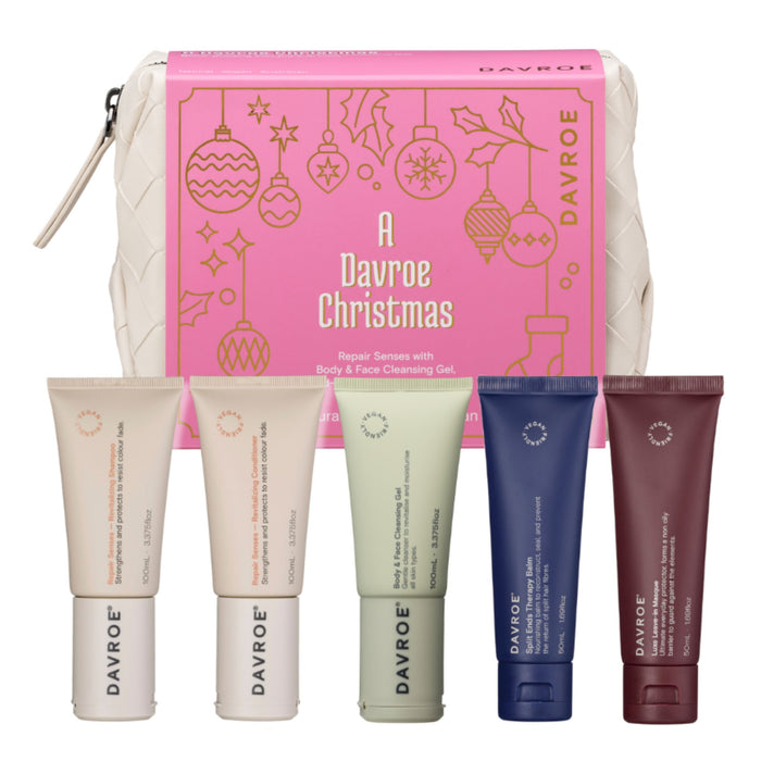 The Davroe Repair Senses Holiday Travel Pack is your ultimate travel companion for hair and skin care.