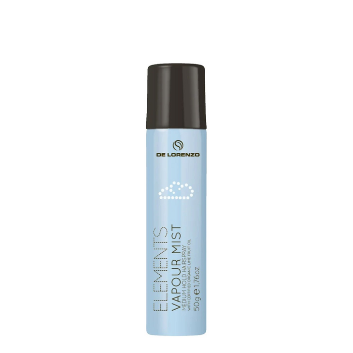 The De Lorenzo Elements Vapour Mist 50g is a medium hold hair spray designed to provide flexible styling and a natural finish.