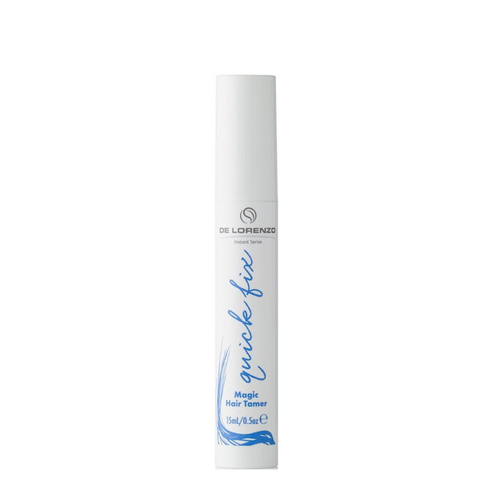 What are the benefits and features of De Lorenzo Instant Allevi8 Quick Fix Magic Hair Tamer 15ml?- Erases fly-away hair and provides long-lasting frizz-free hair.