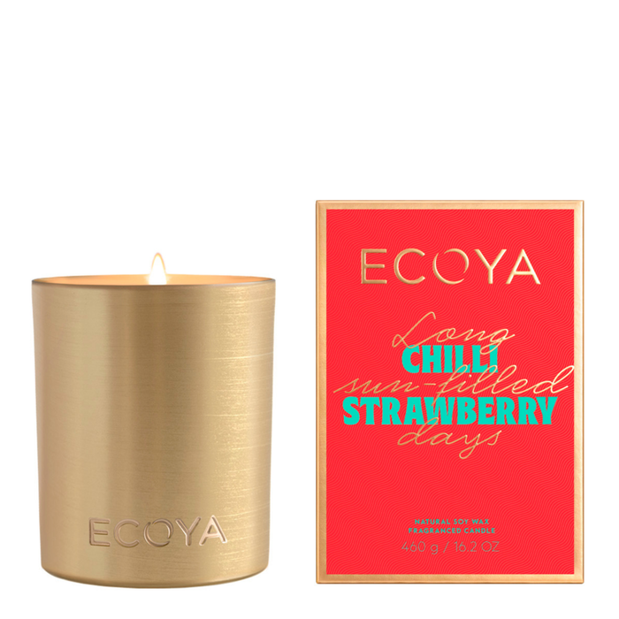 The ECOYA Goldie Candle Chilli Strawberry 460g is a luxurious scented candle that brings a vibrant and festive aroma to any space.