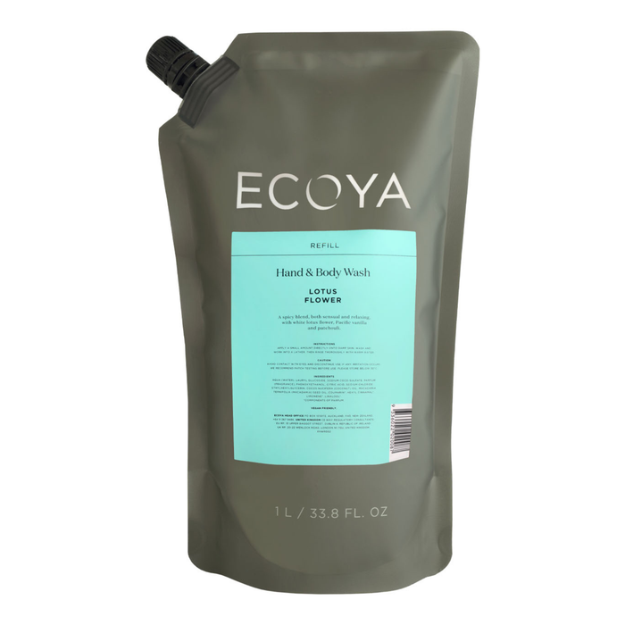 The ECOYA Hand & Body Wash Refill 1000ml - Lotus Flower is a luxurious and eco-friendly way to keep your skin clean and refreshed.