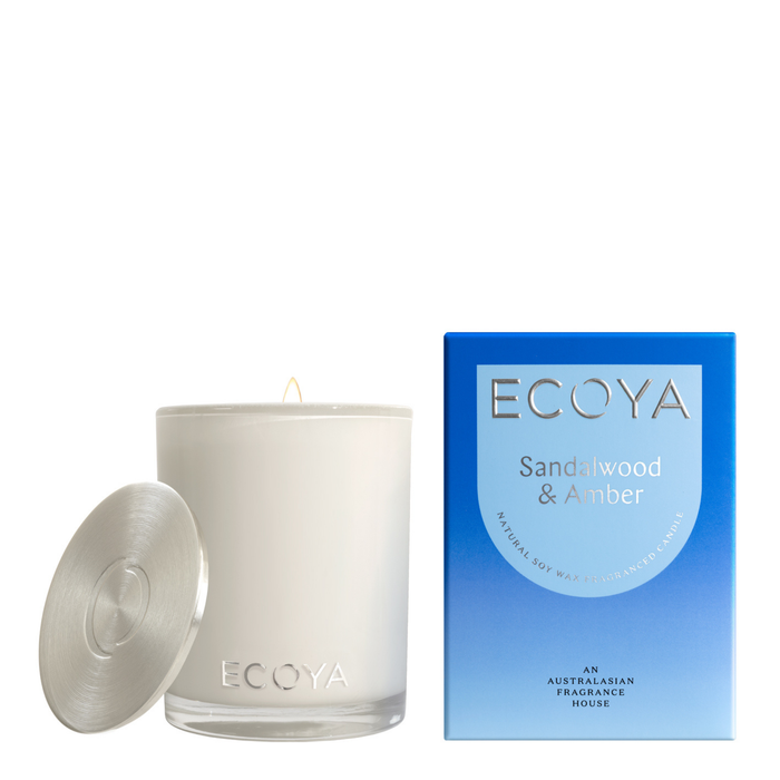Experience the soothing aroma of the ECOYA Madison Candle 400g - Sandalwood & Amber, designed to elevate your space with its luxurious scent.