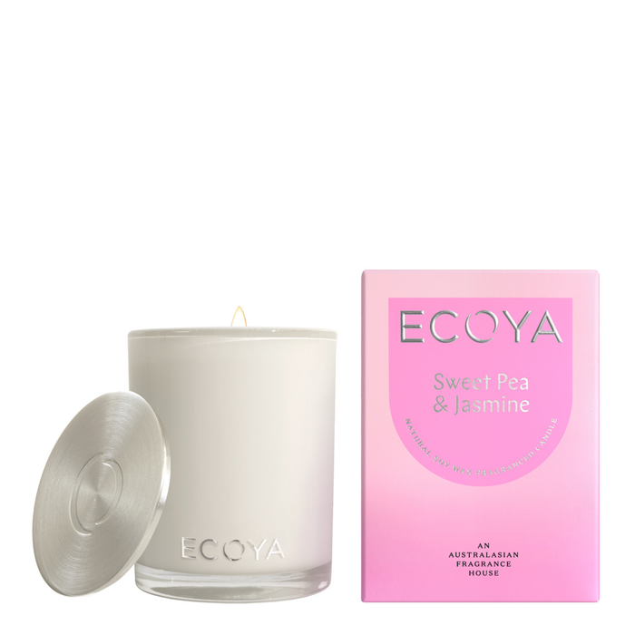 Experience the enchanting aroma of the ECOYA Madison Candle 400g - Sweet Pea & Jasmine, designed to elevate your space with its delightful fragrance.