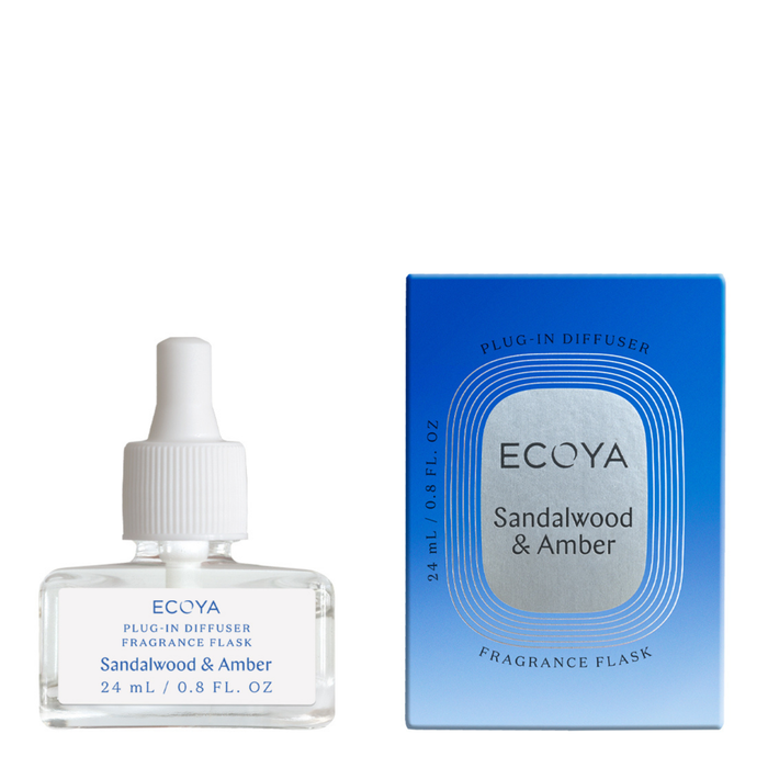 The ECOYA Plug-In Diffuser Fragrance Flask 24ml - Sandalwood & Amber offers a luxurious scent experience for your home.