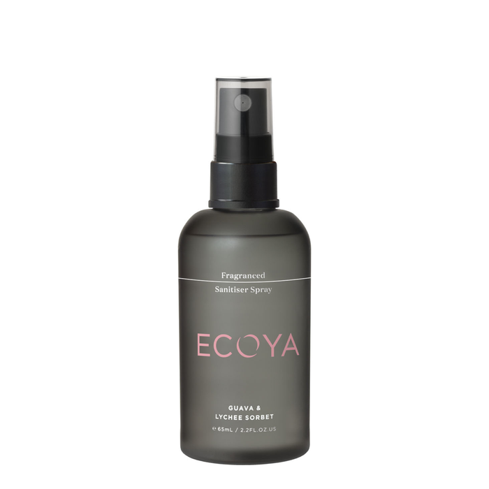 The ECOYA Sanitiser Spray 65ml - Guava & Lychee Sorbet is a luxurious hand sanitiser that combines effective germ protection with a delightful fragrance.