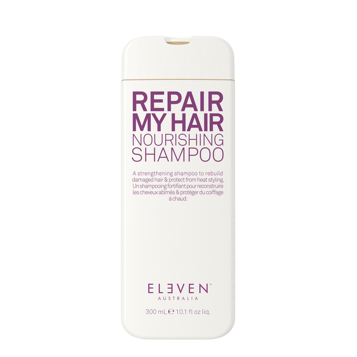 ELEVEN Australia Repair My Hair Nourishing Shampoo 300ml is a repairing shampoo that protects against heat damage, perfect for use on hair damaged by chemical treatments, over-processing and heat styling.
