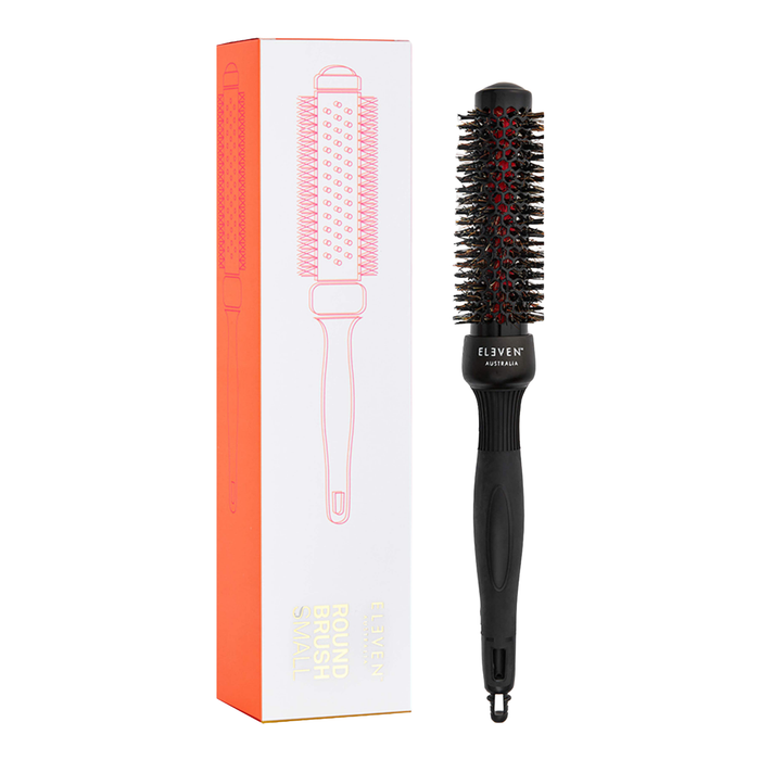 ELEVEN Australia Round Brush in a Box - Small is a professional round brush designed to make heat styling easier with its magnesium barrel, anti-bacterial protection, and anti-static coating.