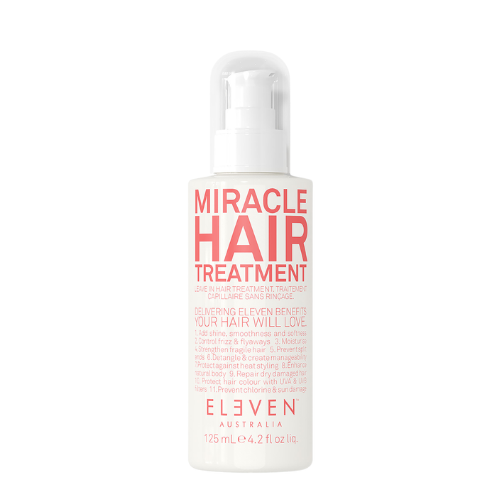 The ELEVEN Australia Miracle Hair Treatment 125ml is an all-rounder leave-in treatment that offers softness, elasticity, strength, and shine to all hair types, while working against frizz, adding body to fine hair, and improving the manageability of coarse hair.