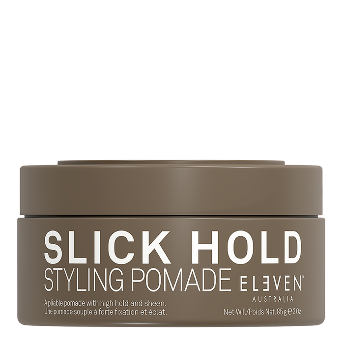 ELEVEN Australia Slick Hold Styling Pomade 85g is a styling paste that provides a strong hold and wet-look, high-shine finish, perfect for short hair or anyone looking to create a groomed look with hold.