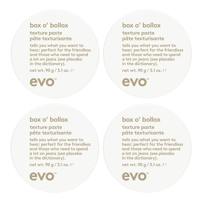 The Evo Box O' Bollox Texture Paste 90g Quad Bundle is the ultimate styling solution for those seeking versatile and long-lasting hair texture.