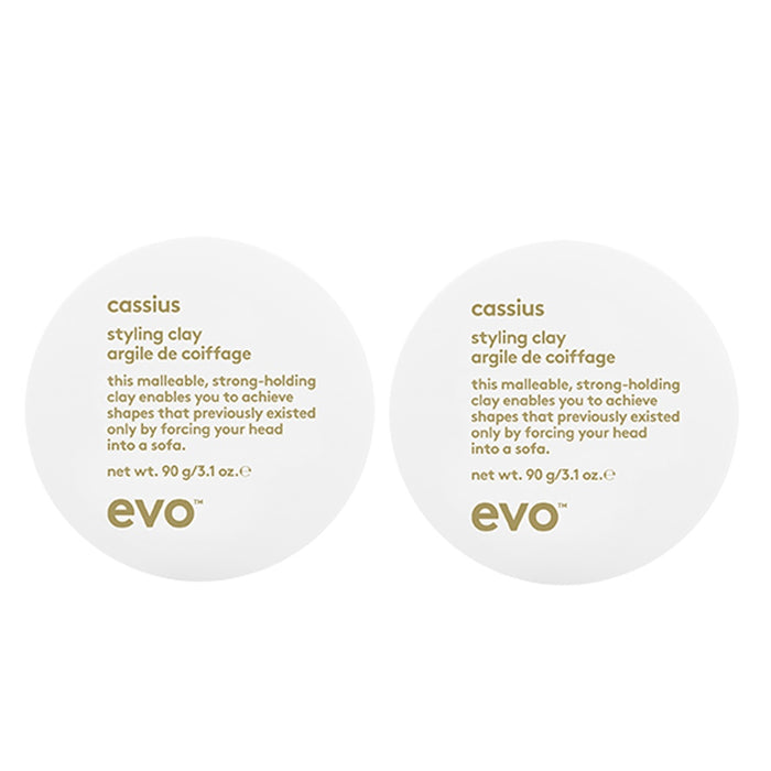 The Evo Cassius Styling Clay 90g Duo Bundle is perfect for achieving a strong, matte finish with long-lasting hold.