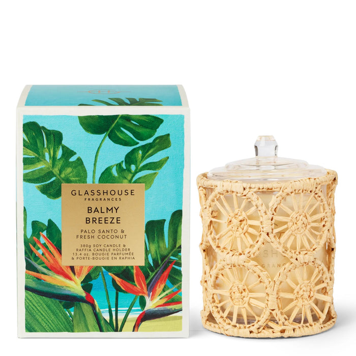 Experience the tropical allure with the Glasshouse Fragrances PARADISE SCREENSAVER Balmy Breeze Candle 380g.