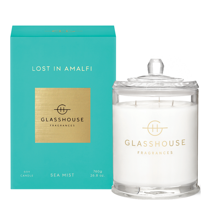 Experience the essence of the Italian coast with the Glasshouse LOST IN AMALFI Candle 760g.
