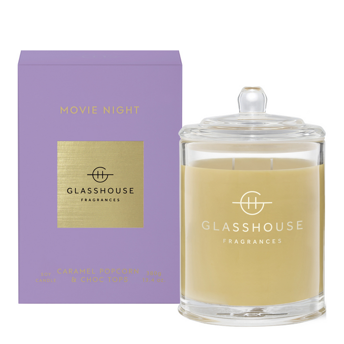 What are the benefits and features of Glasshouse MOVIE NIGHT Limited Edition Candle 380g?- Takes you on an olfactive cinematic journey.