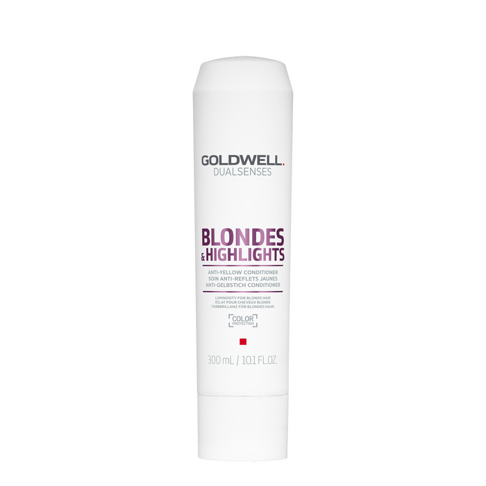 Goldwell Dualsenses Blondes & Highlights Anti-Yellow Conditioner 300ml is a haircare product that detangles immediately and neutralizes unwanted yellow tones for luminous blonde color reflections.