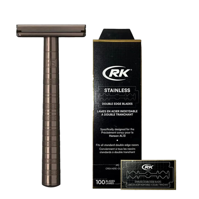 This bundle combines the sleek and durable AL13 DE Safety Razor in a stylish tan finish with 100 RK Shaving Stainless Razor Blades, ensuring a smooth and efficient shave every time. Designed for both beginners and experienced shavers, this set provides a perfect balance of performance and elegance, making it an essential addition to your grooming routine.
