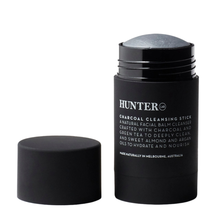Hunter Lab Charcoal Cleansing Stick 50g is a natural hard-working cleansing balm crafted with Charcoal to cleanse and absorb impurities, Green Tea to help protect skin from cell damage, and Argan, Sesame, Almond and Coconut oils to clean, soften and nourish skin.