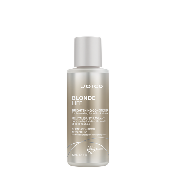 Joico Blonde Life Brightening Conditioner 50ml is a deeply nourishing conditioner that instantly revives blonde hair without weighing things down, giving you the kind of champagne shine and detangling power that makes you feel bubbly all over.
