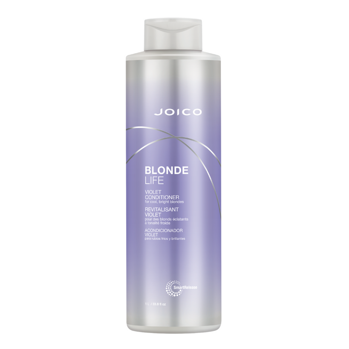 Joico Blonde Life Violet Conditioner 1000ml is a color-balancing formula that instantly cools brassy tones and brightens cool blonde hair while providing hydration, protection, and nourishment to fragile blonde hair.