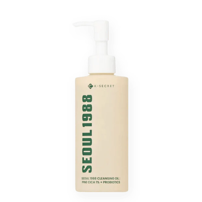 The K-SECRET SEOUL 1988 Pine Cica 1% + Probiotics Cleansing Oil 200ml is a gentle yet effective cleansing oil designed to nourish and purify your skin.