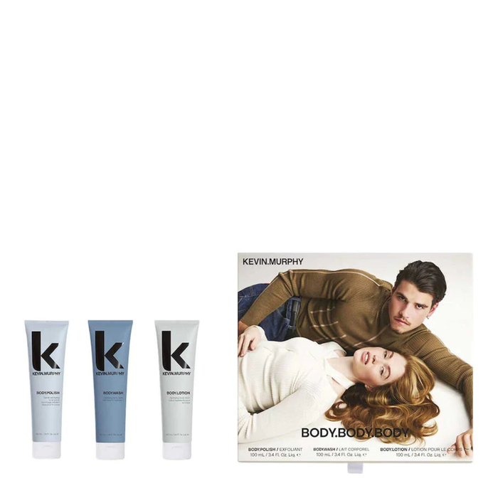 What are the benefits and features of Kevin Murphy Body Body Body Trio Pack?- Curated trio of rich BODY.WASH, BODY.POLISH, and BODY.LOTION that nourishes, hydrates, and restores the skin's appearance.