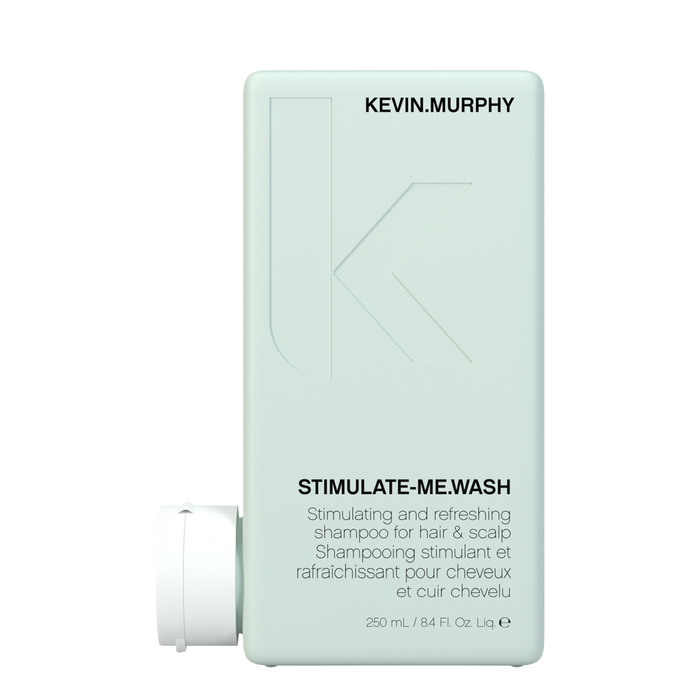 Kevin Murphy Stimulate Me.Wash 250ml is a refreshing daily shampoo for men that awakens and clarifies hair and scalp with camphor crystals, bergamot mint, and black pepper.