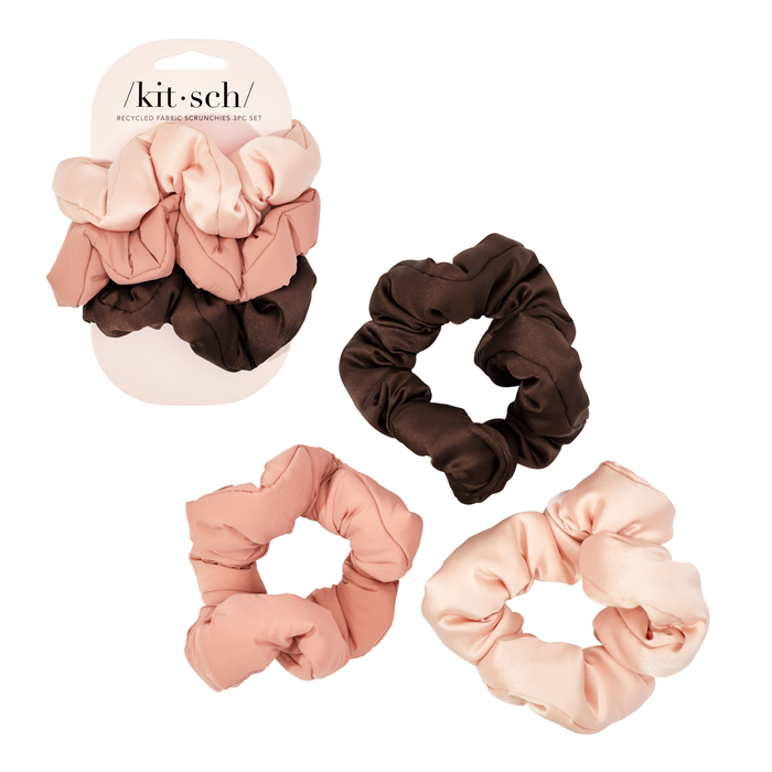 What are the features and benefits of Kitsch Recycled Fabric Puffy Scrunchies 3pc Set - Rosewood?