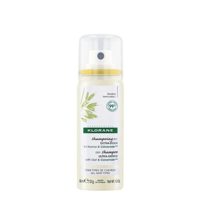 A convenient travel-sized dry shampoo that refreshes hair without water - Klorane Dry Shampoo with Oat and Ceramide 50ml