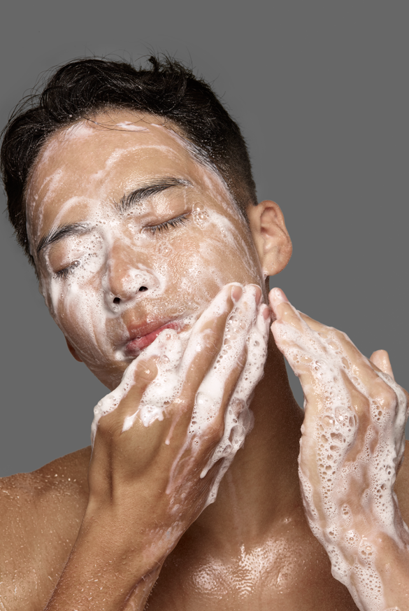 2. Apply a small amount of the cleanser to your hands and lather it onto your face in a circular motion.