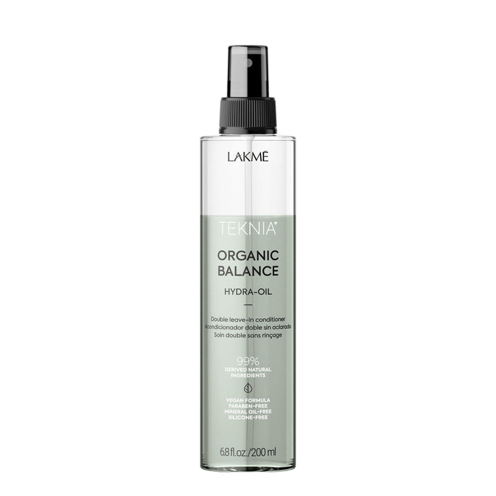 The Lakme Teknia Organic Balance Hydra Oil 200ml is a double rinse-free conditioning spray designed to nourish and hydrate your hair.