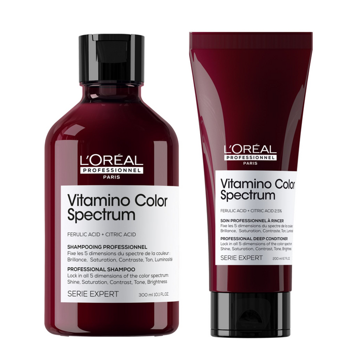 The L'Oreal Professionnel Color Spectrum Shampoo and Conditioner Duo Bundle is designed to enhance and protect your hair color.