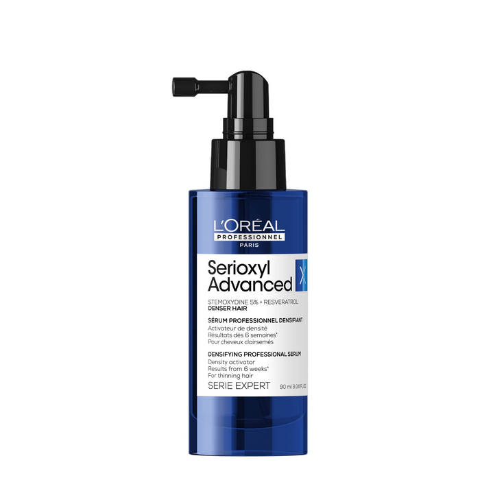 L'Oréal Professionnel's Serioxyl Advanced Density Serum is a technologically advanced hair treatment specifically formulated to address the concerns of thinning hair and hair loss. This powerful serum is concentrated with 5% Stemoxydine and Resveratol to sustain proper stem cell functioning and optimize hair cycles that leads to an improved follicle renewal, helping to induce an increase in hair density.