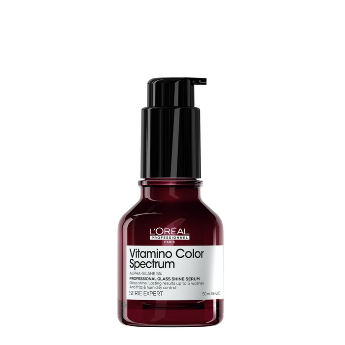 The L'Oréal Professionnel Vitamino Color Spectrum Glass Shine Serum 50ml is a luxurious serum designed to enhance and protect color-treated hair.
