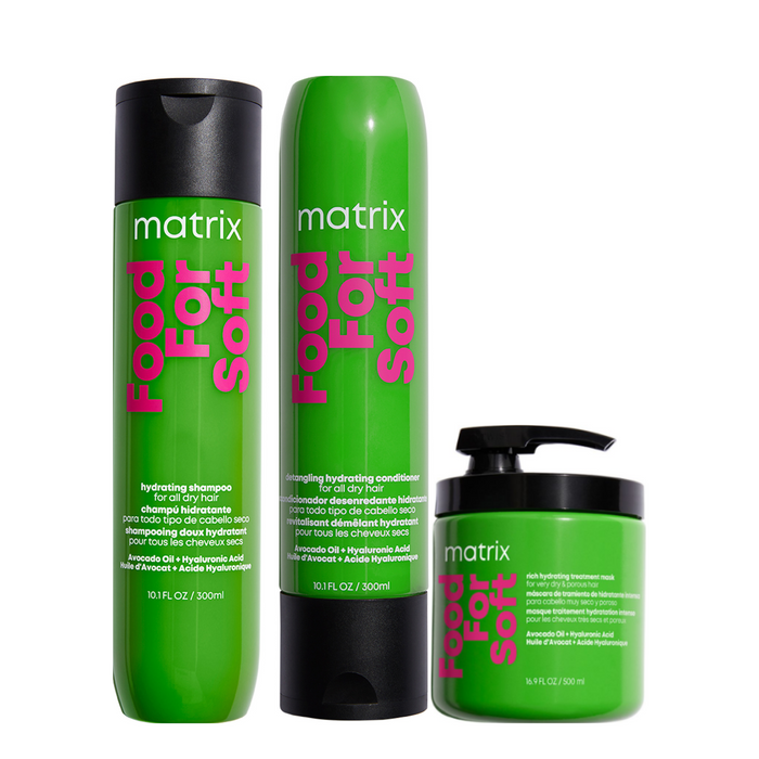 The Matrix Food For Soft Trio Bundle is the ultimate hair care solution for achieving soft, hydrated, and manageable hair.